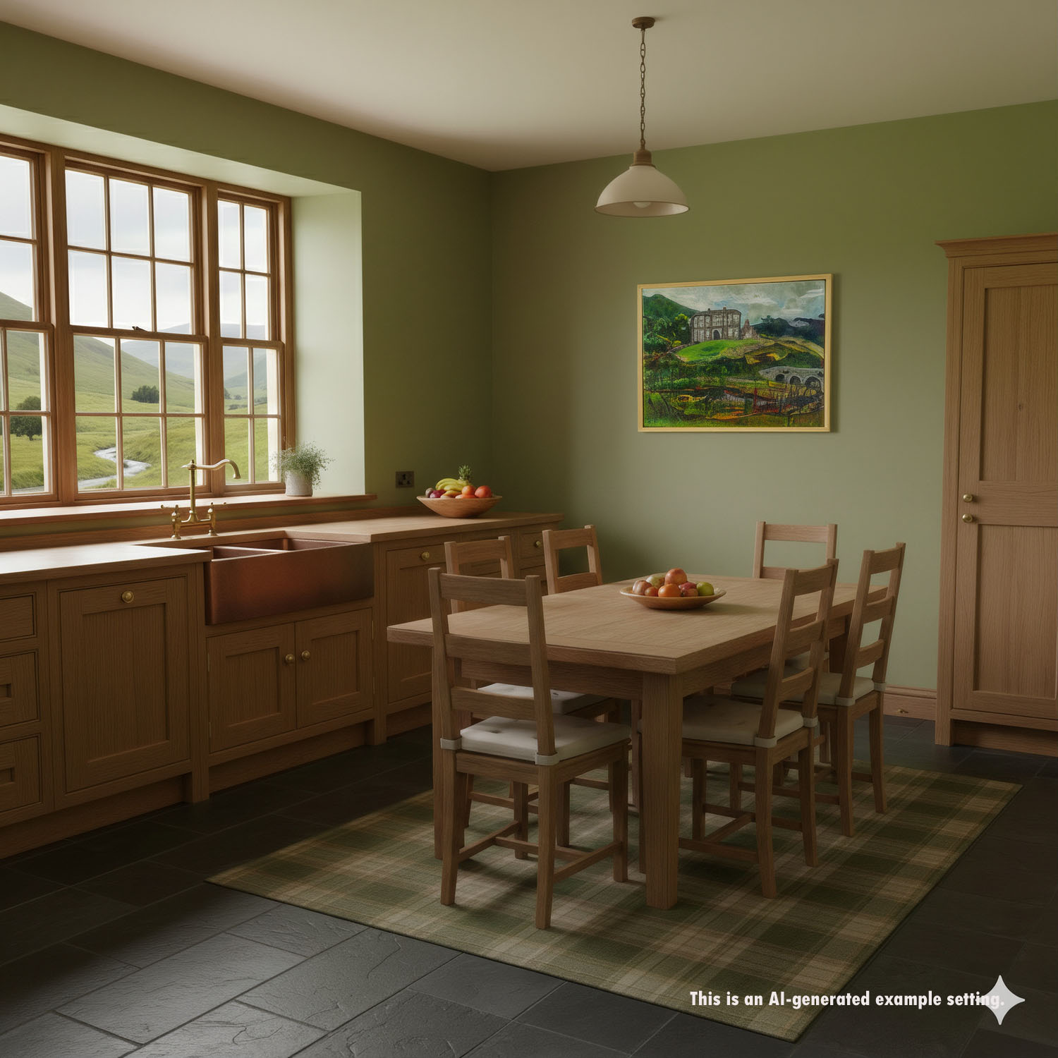 Painted in 1976, this expressive landscape captures the stately Fermoyle House set amid the lush, rolling hills of Brandon Bay, Ireland. Alexander Michael renders the scene with bold, gestural brushstrokes that convey both the grandeur of the old manor and the untamed beauty of the Irish countryside. The house, perched prominently on a sunlit rise, dominates the composition, while a stone bridge in the foreground leads the viewer’s eye through fields shimmering in green and gold. The dramatic sky, filled with shifting tones of blue and grey, enhances the sense of atmosphere — a moment between light and shadow, calm and approaching rain. Michael’s vivid use of color and texture transforms the landscape into a vibrant symphony of movement, light, and mood, reflecting his deep connection to nature and his painterly sensitivity to place. Oil on canvas. Signed lower left 'AM 76'.