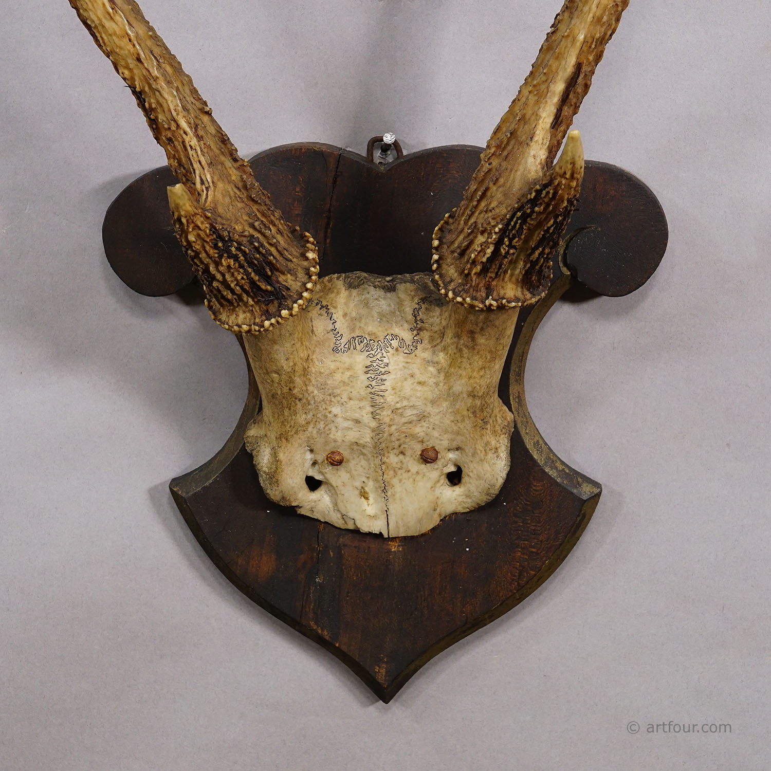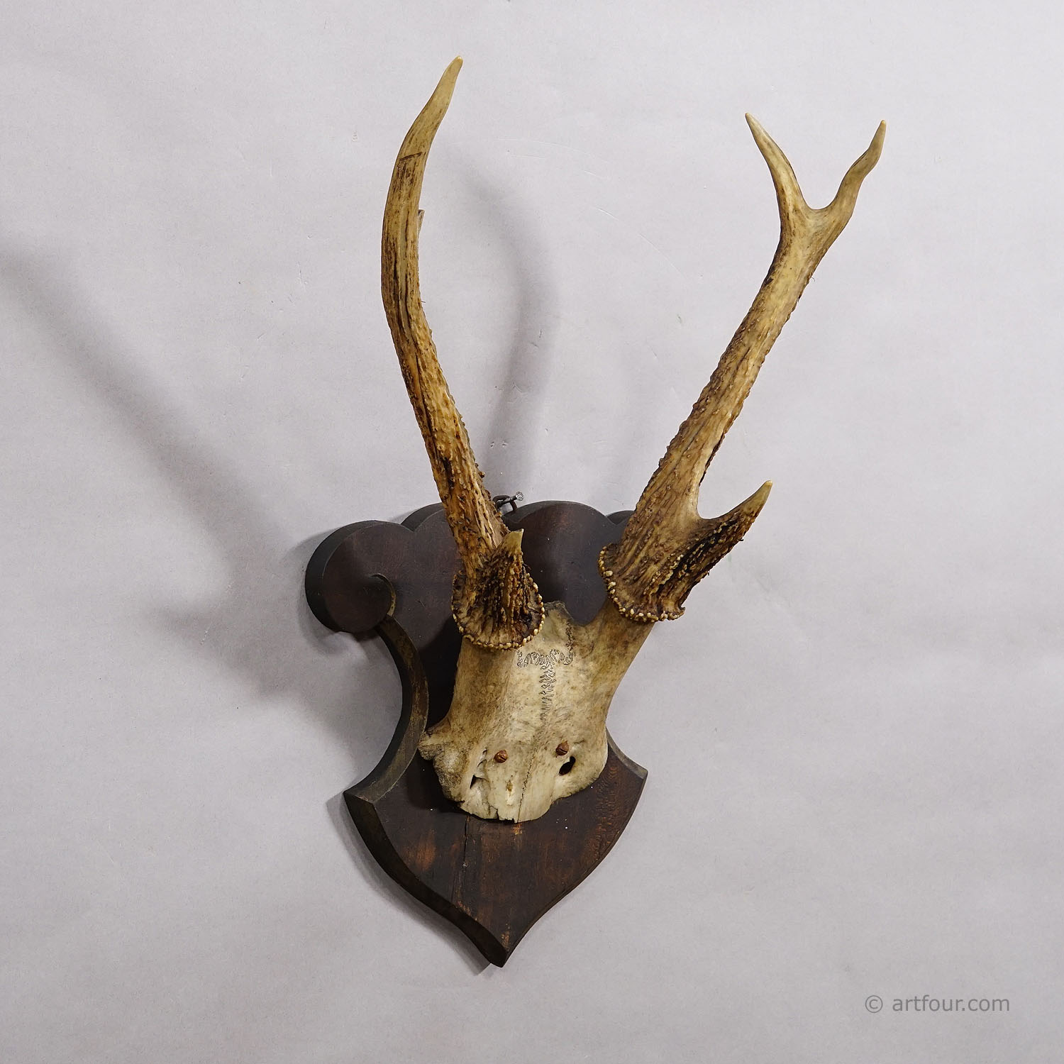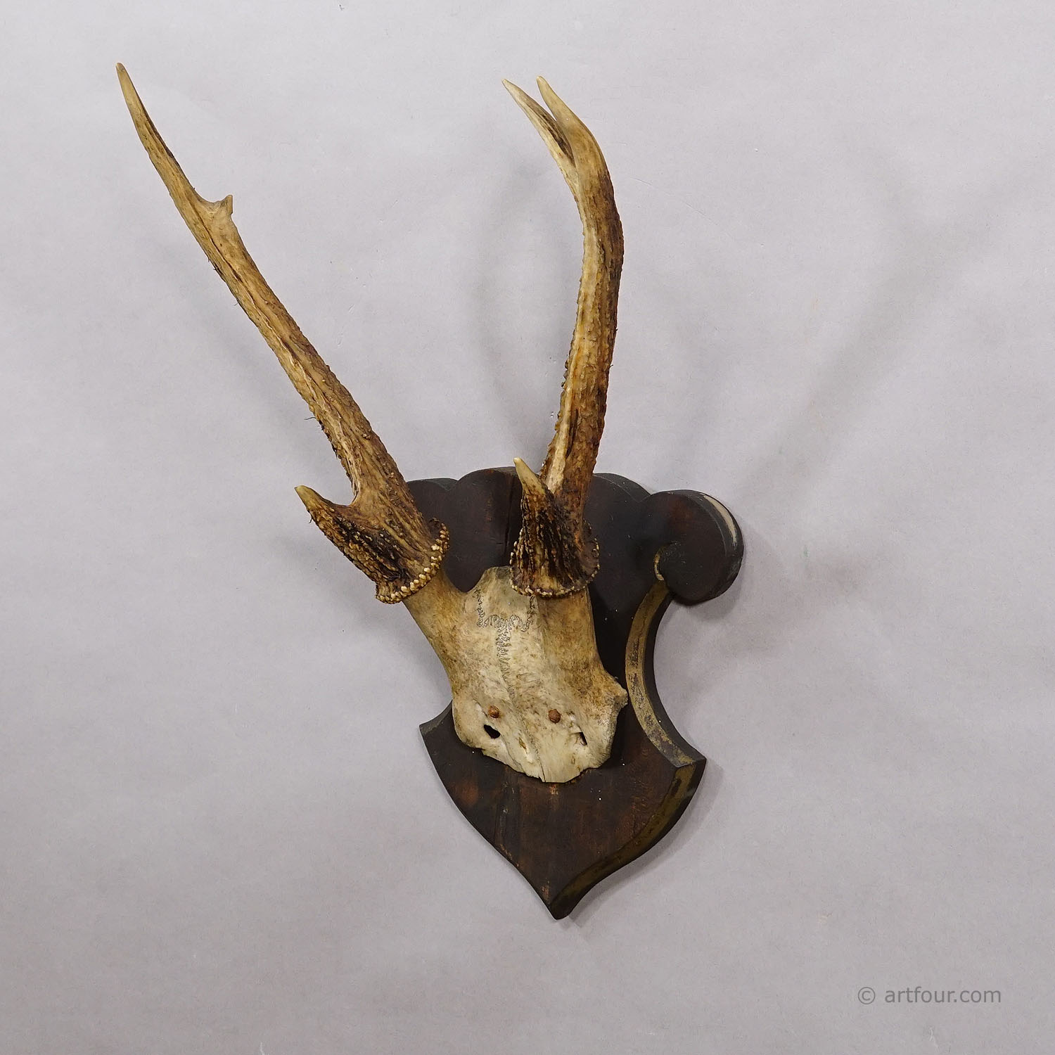 Antique 6 pointer Siberian Deer Trophy on Wooden Plaque, ca. 1940s