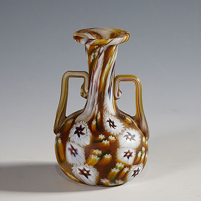 Antique Murrine Vase with Handles, Fratelli Toso Murano ca. 1920s