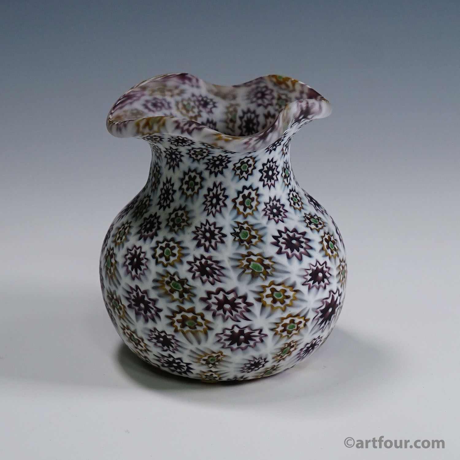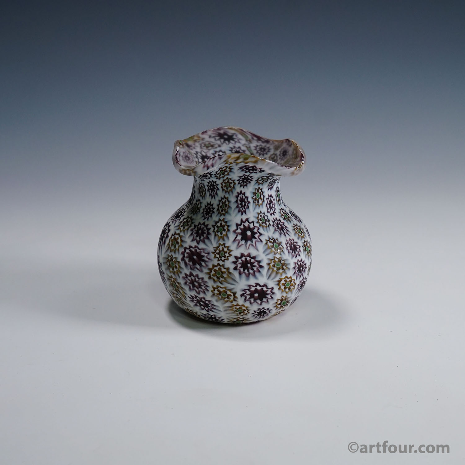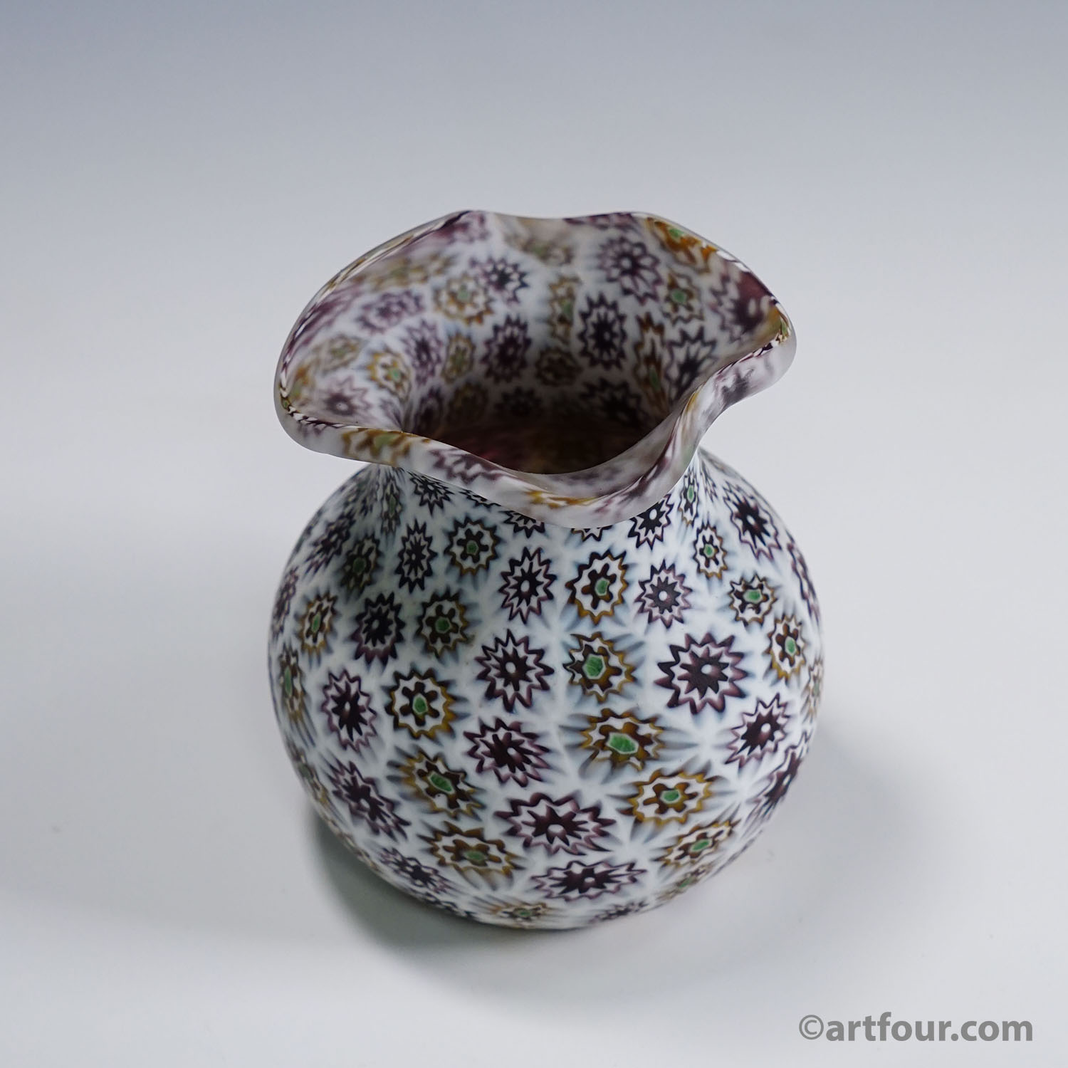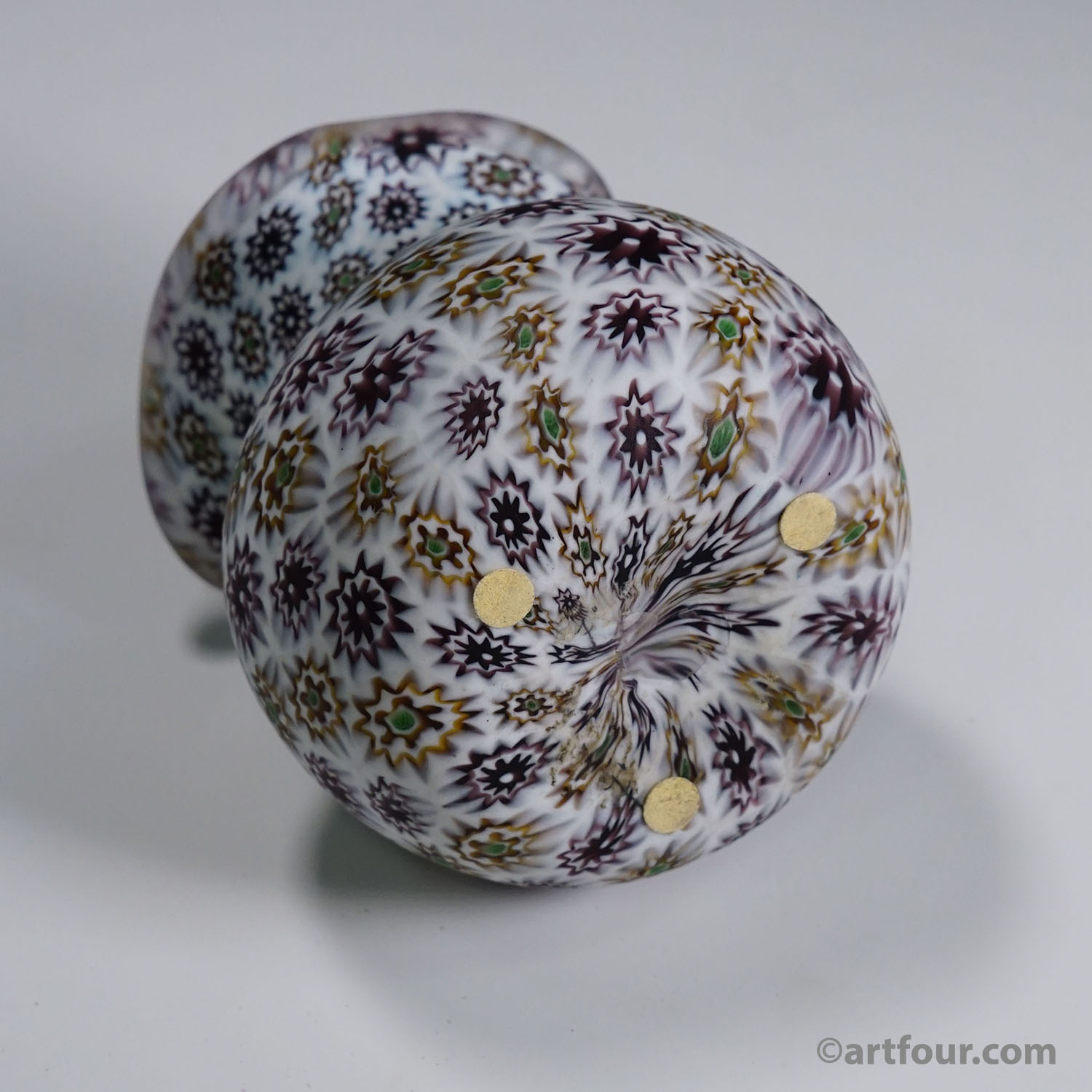 Fratello Toso was one of the leading art glass manufacturers of Murano in the 20th century. In the early 1900's Fratelli Toso started to produce glasses in murrine technique. Murrine and Millefiori glasses remained a major product field of Fratelli Toso. In 1912 a very successful series of liberty inspired art glasses, designed by Hans Stoltenberg Lerche, was presented at the Venice Biennale. From 1936 Ermanno Toso became artistic director. He brought the Millefiore glasses to a new level. A big succes where also the 'Stellato' and 'Cattedrale' murines vases designed between 1948 and 1964 by the artist Pollio Perelda. In the 1960's and 1970's Renato Giusto and Rosanna Toso designed modern cristallo glass series for Fratelli Toso. The company closed in 1982.