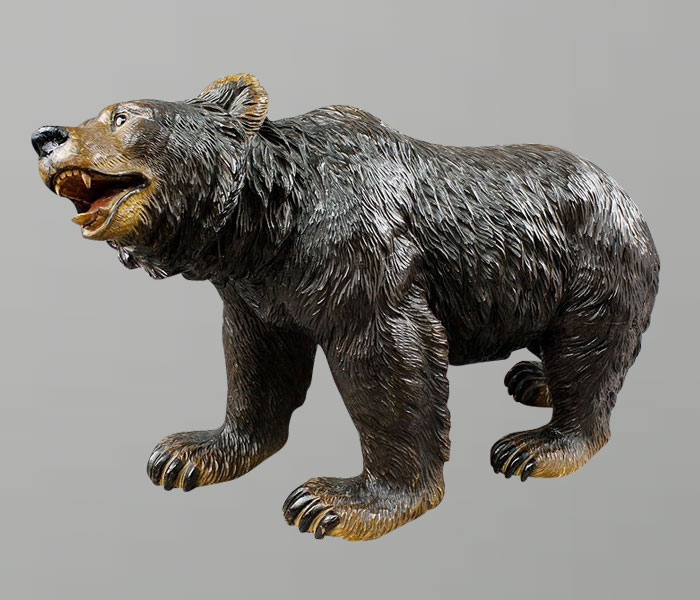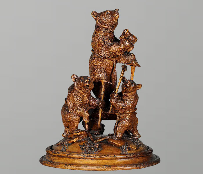 At all times wild animals fascinate people. The highland around Brienz has large variety of different wild animals. Bears are among the most popular models for carvers. On the one hand bears are easy to cut and on the other hand they have a strong symbolized image. The enthusiasm for bears in art increased in the meantime the population endangered. One can say that hardly any other wild animal evolved from dangerous to fetish or even cute. Like the company Steiff with its Teddy bear collection, the Brienz´carvers reached inimitability.